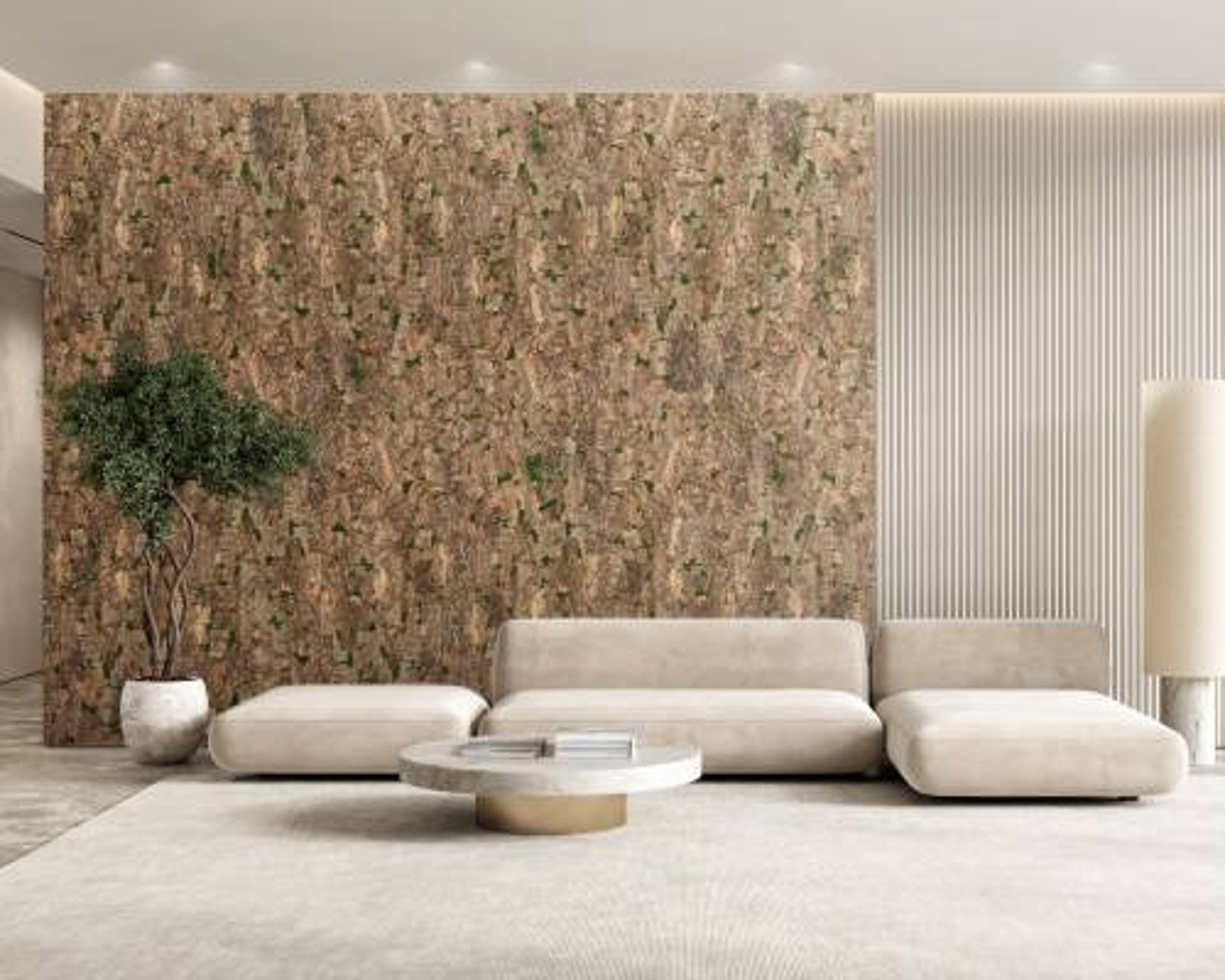 More than any other collection, the Cork Bark collection allows you to enjoy the natural majesty of the cork oak tree indoors. The natural grandeur of these panels, which are built from both the inside and outside of the cork oak tree, enables the construction of rustic and iconic environments. These planks are aged and rough, creating a striking contrast. The beauty and splendor of Cork Bark planks bring nature inside, especially as they are also made up of small fragments of preserved moss.